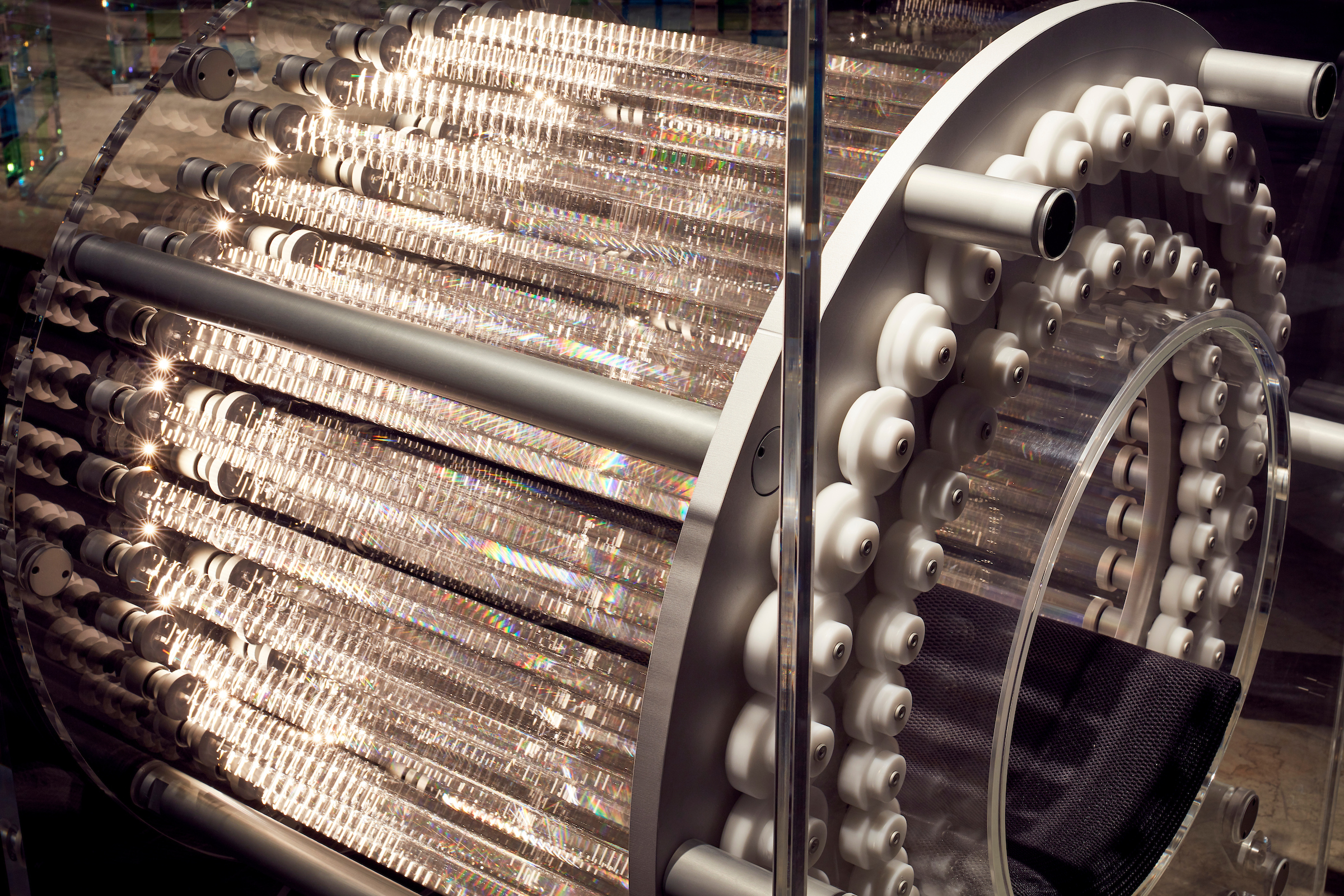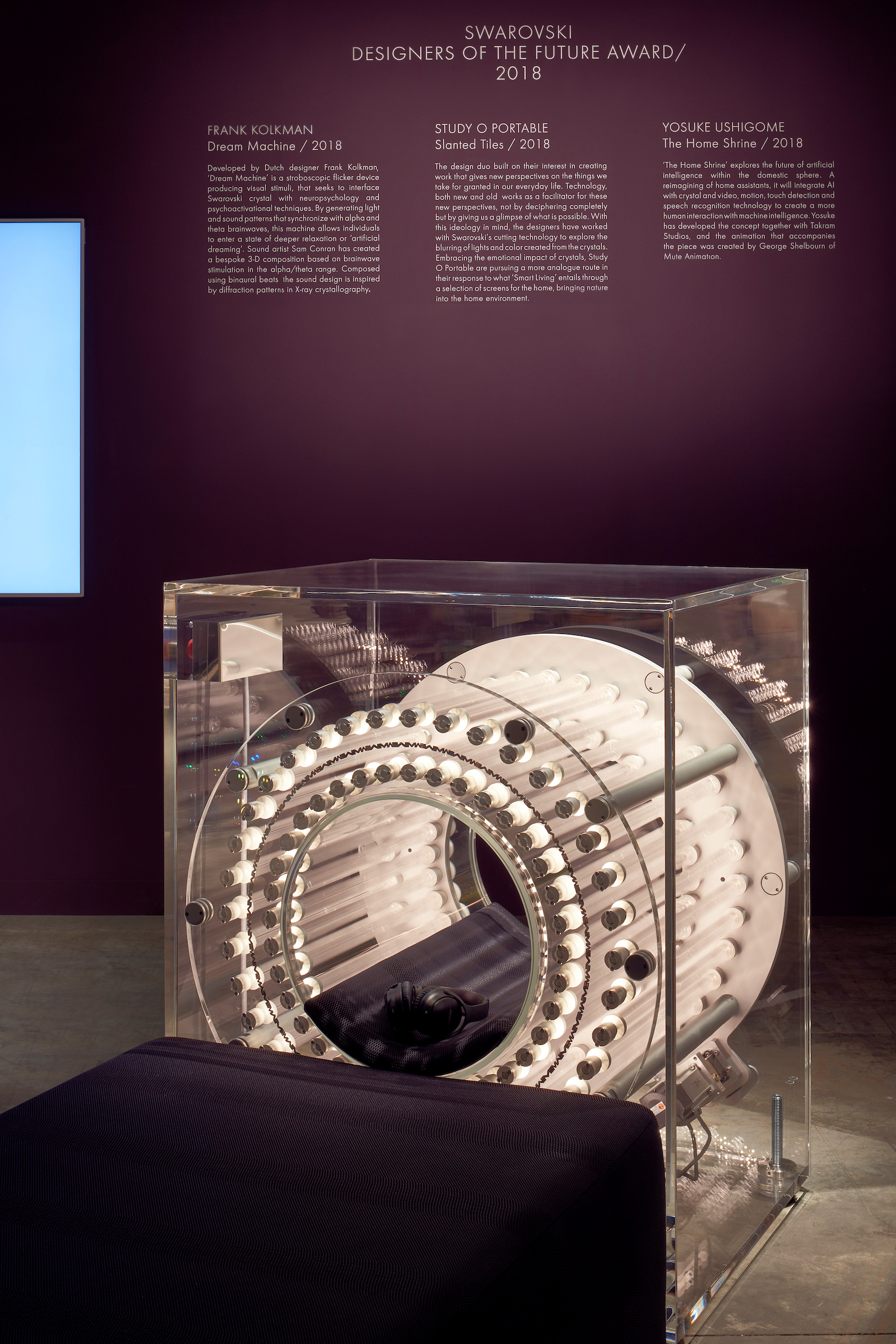 The Dreamachine was a collaboration with the Dutch experimental designer Frank Kolkman which acted as a contemporary iteration of the stroboscopic flicker device that was made by the artist Brion Gysin and William S. Burroughs in the 1960s. The machine was designed by Frank and uses light refracting off motrorized crystals to create a stroboscopic effect that induces trance like states. For the project I created a generative composition consisting of 3D spatialized binaural oscillations to activate brainwaves at the alpha and theta wavelengths to induce feelings of relaxation and REM sleep amongst users. You can play with the open version of the sound engine that was written in supercollider here for 3D spatializaton I processed these using IRCAM spat and automated the positioning's relating to images of X-Ray crystalography diffraction patterns. The exhibition audio will hopefully be released fully at a later date.
