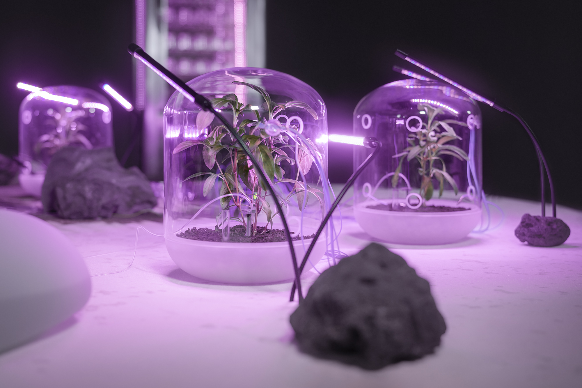 The Outside Inside was a project directed by the Speculative Designer Johanna Schmeer which conceptually questions the potential future relationship between living organisms and cybernetically controlled/sensored environments in a scenario of exo-terraformed planets. Johanna wanted me to find a way to create a tangible link between the bio circuitry of plants and that of participants in the installation. Below are custom built circuits inspired by the scientist and author John Lilly made for measuring plant capacitance from the top leaf to the soil to create a complex binaural oscillation that tunes your brain waves to the plants capacitant signature. On display until further notice at Futurim in Berlin, 2019 ~ onwards.