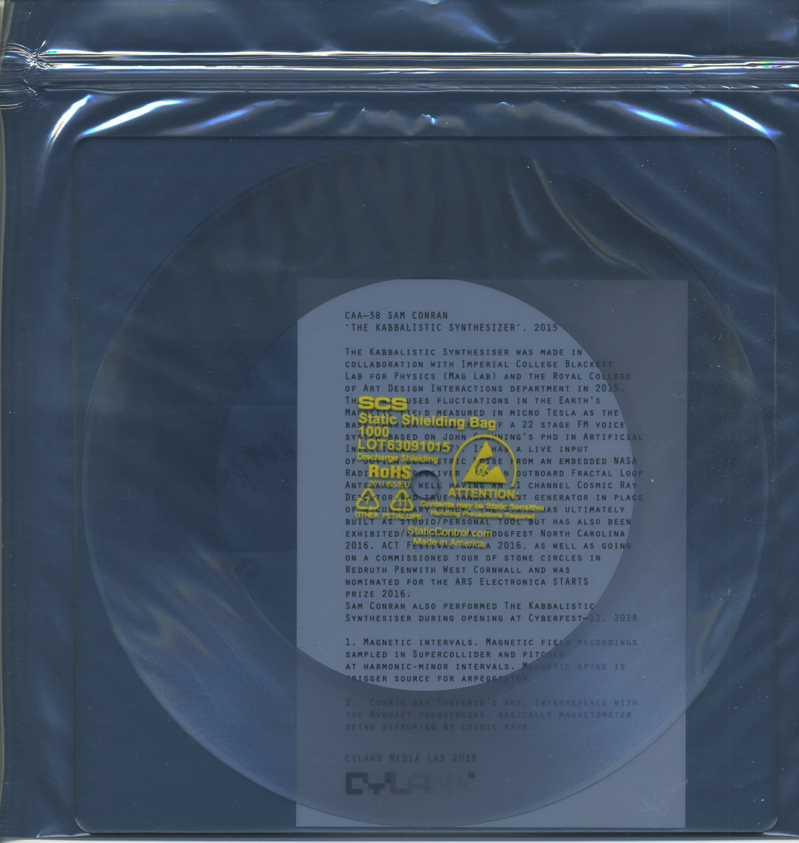 In 2017 I was invited to contribute some recordings made with the Kabbalistic Synthesizer to the Cyland Audio Archive, an archiving project set up and run by Sergey Komarov between St. Petersburg, Kaluga and New York. The recordings I submitted were made using some of the original sounds recorded from the first Kabbalistic Synthesizer that was extremely temperamental and with hindsight beautifully shambolic and irreproducible. The phenomena caught in the recording in both instances were mysterious glitches, something to do with some area of the synth interacting with another in an unintended way. These were some magic moments with the synth used as samples and composed with using supercollider and some sequencing. Listen/buy here.